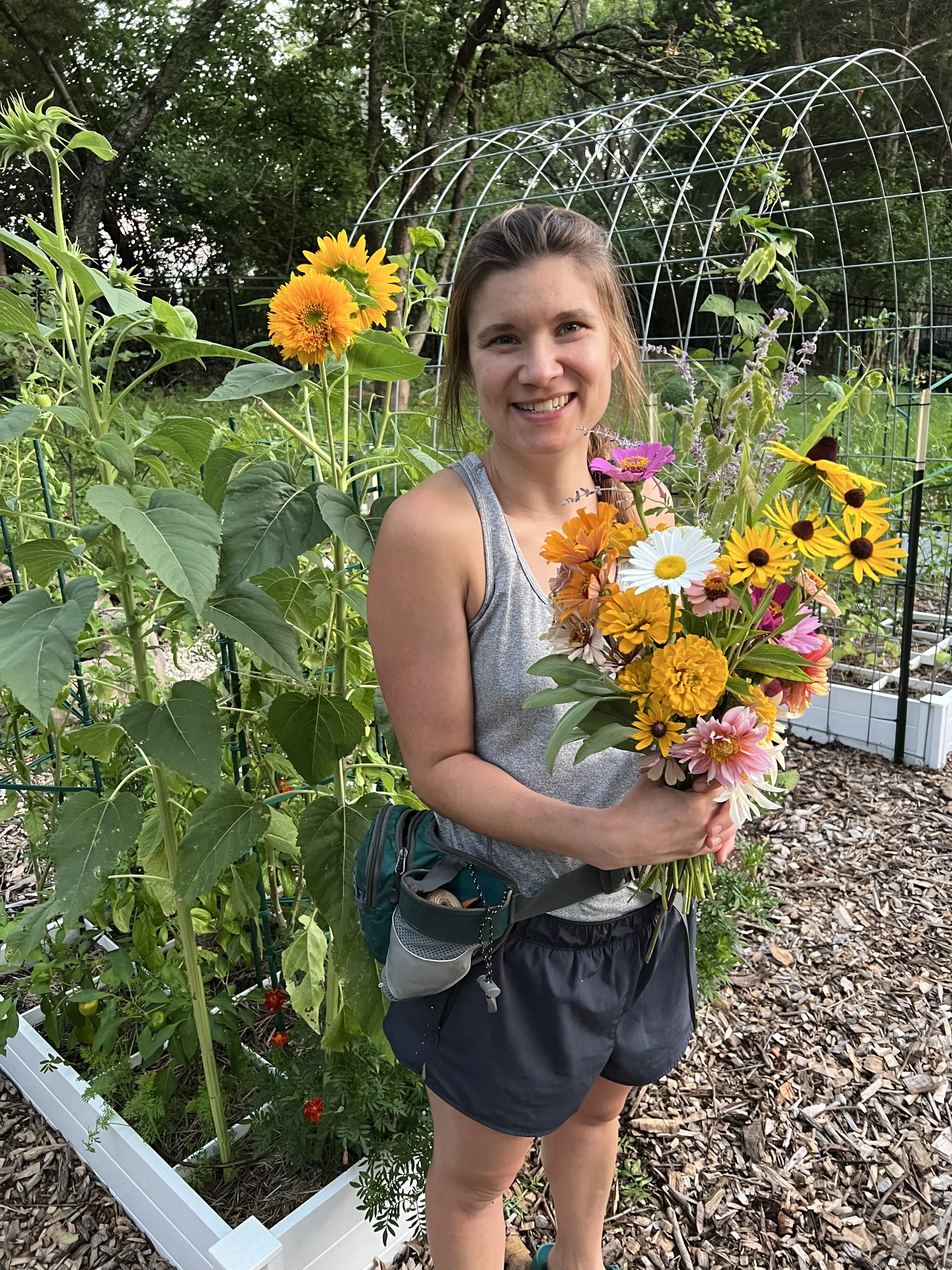 As the season went on, I found that the flowers were by far my favorite part of the garden. The more I had, the more I wanted. And I started experimenting with cutting zinnias, sunflowers, and dahlias, as well as my native flowers, and making bouquets.